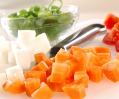 "Mieszanie" . - Dodać białą rzodkiewkę i marchew, gotować kolejne 25min/100°C/