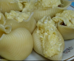 Bardzo lubię pierogi ruskie. Trzeba jednak przyznać, że z pierogami jest troszkę zabawy, a przy dwójce maluchów w domu, po prostu szkoda czasu na lepienie pierogów, więc farszem do pierogów ruskich postanowiłam wypełnić muszle makaronowe: