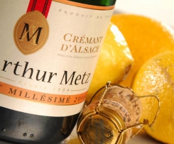 - 1 butelka wina musującego, białego, owocowego (np. Crémant de Loire), schłodzonego