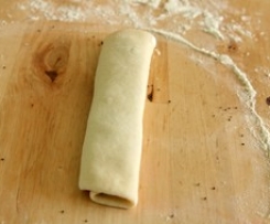 "Ciasto" /.Odstawić na 30 min., by ciasto podrosło. Po tym czasie wyjąć je na oprószony mąką blat, podzielić na 16 części, z każdej uformować kuleczkę. Odstawić na 5 - 10 minut przykryte wilgotną ściereczką.
