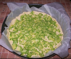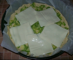 "Mieszanie" . Odlozyc na bok. Foremke natluscic lub wylozyc papierem. Wylozyc ciasto, "dopasowac" do formy. Na ciasto najpierw wylozyc boczek lub cukinie, nastepnie ser ( w jakiej postaci sie chce). Nastepnie wlozyc do naczynia ( bez mycia) jajka, mleko, smietane, parmezan, sòl pieprz: 10sek / obr 5. Wylac "mase" na ciasto. Piec w nagrzanym piekarniku: 180° / 30min (okolo).