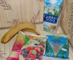 banany, owoce mrożone, napój sojowy naturalny, nasienie lnu