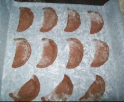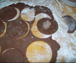 "Blokada naczynia miksującego" wlozyc skòrke, skòrki kadryzowane i cukier: 5sek / obr 8. Dodac wszystkie skladniki: 25sek / obr 4. Rozwalkowac ciasto, wykrawac krazki, formowac pierozki. Piec w nagrzanym piekarniku: 190° / ok. 15min (sprawdzac by sie nie przypalily).Jesli zostanie nadzienie: dodac troche platkòw owsianych, wymieszac, klasc lyzka ciasteczka na blaszke. Piec w goracym piekarniku: 190° / ok. 15-18min. Zostawic do wystygniecia.