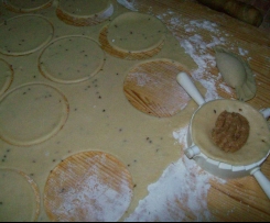 Pierozki robilam tym "czyms", co jest na zdjeciu, do pierogòw. Mysle, ze maka tortowa powinna byc uzyta w Polsce. Poradze Ci cos - jesli bys kiedys je robila ponownie i ciasto bedzie za suche, dodaj odrobine zimnej wody. Moze byc, ze to ròznica maki i ta polska wchlania wiecej wody. Dlatego wychodzi kruche. Dodac ciut wody i chwilke wyrobic