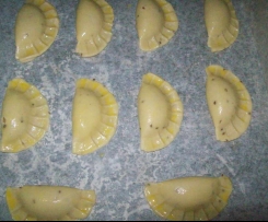 "Blokada naczynia miksującego" wlozyc jablka: 5sek / obr 4. Dodac pozostale skladniki na nadzienie: 10sek / obr 3. Rozwalkowac ciasto, formowac pierozki z uszykowanym nadzieniem. Posmarowac lekko roztrzepanym jajkiem. Piec w goracym piekarniku: 190° / 15-20 min, do lekkiego zrumienienia. Po ostudzeniu posypac cukrem pudrem.