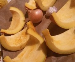 - 1300 g oczyszczonej dyni ze skórką, pokrojona na ćwiartki