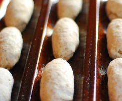 czas ok. 2min.) Jeżeli ciasto będzie się mocno kleiło podsypujemy je lekko mąką pszenną.Uformowane bułeczki układamy na blaszce do pieczenia. (ja używam falistej z otworami, ale na zwykłej też upieką się doskonale).