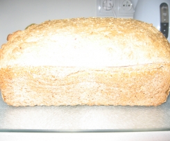 Chlebek wyszedł piękny, foremkę natłuszczoną wysyłałam otrębami. Chleb wyrastał od razu w foremce, wyrósł w ciągu 15 min i do piekarnika. Następnym razem spróbuję dodać słonecznik i siemię.