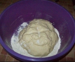 "Blokada naczynia miksującego" wkladamy wode, mleko i cukier: 2min / 37° / obr 2. Pod koniec 2 minut, dodajemy rozdrobnione drozdze ( przez otwòr). Dodajemy make, olej i sòl: 3min /