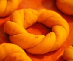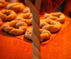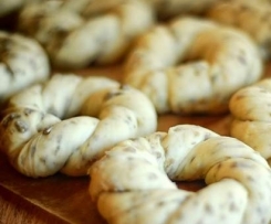 2) Sezam lub mak mieszamy z roztworem jajka i wody. Takim gotowym roztworem smarujemy obwarzanki