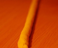 Dalej z ciasta formujemy rulon i dzielimy go na 12 równych części. Z każdej z części formujemy rulon o długości około 40-50cm. Składamy na połowę i przytrzymując oba końce zwijamy w warkocz. Końce złożonego i zaplecionego rulonu łączymy i bardzo dokładnie zlepiamy. (ze sprawdzonych sposobów najlepiej wyszły gdy jeden koniec owinąłem brzegiem drugiego i zlepiłem. Solidne zlepienie jest o tyle ważne, że w późniejszych krokach bardzo łatwo je rozkleić i się rozpadną.