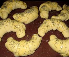 - Uformowane rogale, przełożyć na blchę do pieczenia wyłożoną papierem i pozostawić do ponownego wyrośnięcia na ok. 1 h. Po tym czasie rogale posmarować roztrzepanym jajkiem za pomoca pędzelka i posypac makiem. Wstawić do nagrzanego piekarnika. Piec ok. 20 minut. U mnie jest to 170 stopni/termoobieg. Każdy piekarnik piecze inaczej, dlatego proponuję kierować się własnym doświadczeniem w ustawieniach temperatury i czasu. W przypadku braku doświadczenia należy rogale cały czas obserwować podczas pieczenia. Zakończyć pieczenie jak się dośc mocno zarumienią.