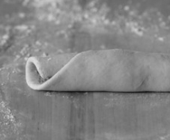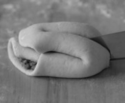 Po wyrośnięciu ciasto podzielić na 10 części.