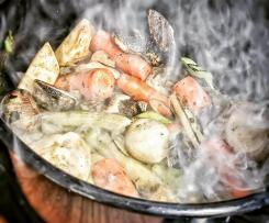 - W naczyniu miksującym założyć osłonę noża.Przełożyć uprażone warzywa z ziołami do naczynia miksującego.Dodać liść kombu grzyby shiitake. Zalać wodą do max. objętości w naczyniu miksującym. Funkcja wolne gotowanie 3,0h/98st.