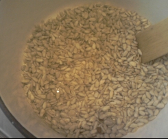 po kilkunastu zrobionych chałwach, mogę doprecyzować proporcje: na 500g słonecznika 120-150g miodu (lekko słodkie - bardziej słodkie)