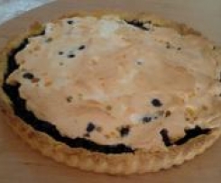 5. Wyciągamy ciasto w piekarnika wrzucamy na nie jagody i nakładmy ubite białka.