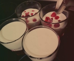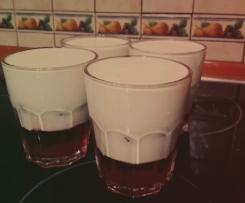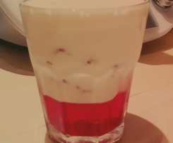 Jedną z galaretek (ja dałam malinową) wlewamy do 4 szklanek/pucharków i wkładamy do lodówki, by stężało.