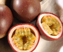 - 6 owoców marakui, przekrojonych na połówki, wydrążonych