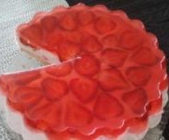 W "Radość gotowania" jest świetny przepis na taki właśnie sernik, tylko w wersji brzoskwiniowo-wiśniowej, ale ja właśnie robię tylko w wersji truskawkowej. Lekki, bardzo smaczny i bez chemii - biszkopty, ser wymieszany z cukrem, galaretką i odrobiną masła i na wierzchu owoce z galaretką - pychota!! A chemii w naszych potrawach da się uniknąć i nie trzeba mieszkać w gospodarstwie agroturystycznym ani nie trzeba mieć góry pieniędzy, wystarczy troszeczkę "pokombinować"
