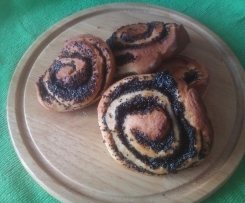 zrobiłam je na niedzielę dla taty wielbiciela ciast z makiem. Dodałam do maku 75 g miodu i 75 g brązowego cukru..oczywiście napakowałam rownież orzechów i rodzynek. Rewelacja! Nawet przeciwnicy maku zachwalali. Padła sugestia, że można je zrobić np. mniej słodkie i polukrować.