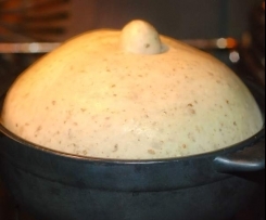 Rozgrzej piekarnik do 50 stopni C. Przygotuj foremki w których upieczesz chlebki.(Najlepsze będą niewielkie okrągłe, żaroodporne naczynia. Jeżeli takich nie masz może to być dowolna blaszka lub okrągła tortownica, trzeba tylko wtedy pilnować aby ciasto nie przerosło, bo rozleje się na boki).