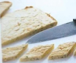 6. Rozprowadzić ciasto na grubość palca na blasze wyłożonej papierem do pieczenia. Piec w piekarniku w temperaturze 200°C przez 13-15 min. Pozostawić do ostygnięcia, a następnie pokroić w romby.