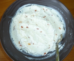 Nadzienie - serek włożyc do naczynia, dodać cukier, jogurt i skórkę i wymieszać czas 30 sek, obr.poz.4.
