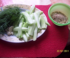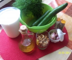 Ogórki obrać,przekroić na pół i usunąć pestki, dołożyć do czosnku z koperkiem - rozdrobnić 4 sek./obr.4.