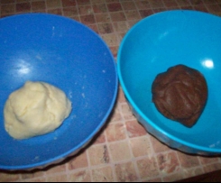zrobiłam ...do bialego dodalam jednak drugą łyżeczke mleka; z wałkowaniem - no coż - białe rozwałkowałam a potem ciemne połoyżłam na białym i też rozwalkowałam - udało się
