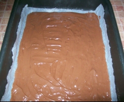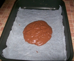 Wlaczyc piekarnik na 200° . Do naczynia wlozyc cukier: 20sek / obr 7. Dodac maslo: 15sek / obr 5. Musi powstac krem. Dodac make, kakao i proszek: 20sek / obr 5. Przelozyc do miseczki. Do czystego i suchego naczynia wlozyc bialka, ubic: 2min / 37° / obr 4. Dodac do masy, delikatnie wymieszac. Blaszke wylozyc papierem, wylozyc mase, piec w nagrzanym piekarniku przez 4min. Dokladnie 4min, ani mniej, ani wiecej!!! Wylaczyc piekarnik, zostawic biszkopt w srodku do kompletnego wysuszenia. Wyjac, wystudzic jeszcze.