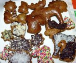 "Ciasto" . Tak wyrobione ciasto bedzie kleiste i dość płynne. dzielimy ciasto na dwie części i zawijamy w papier śnidaniowy i na min 1h wkładamy do lodówki w celu dokładnego schłodzenia ciasta. Na oprószoneej mąką stolnicy rozwałkowywujemy ciasto i bardzo istotne jest fakt aby nie rozwałkowwywać ciasta na cieńsze niż 4-5 mm, gdyż inaczej wysuszą się w trakcie pieczenia i będą bardzo twarde. Rozgrzewamy piekarnik do temp 170 st grzanie góra dół, bez termoobiegu i pieczemy pierniczki wcześniej posmarowane jajkiem około 10-15min (każdy piekarnik będzie piekł odmiennie). Po ostudzeniu dekorujemy wg własnych pomyslów i trzymamy ciastka w szczelnie zamykanym naczyniu aby nam się nie wysuszyły i niw zrobiły twarde. SMACZNEGO!