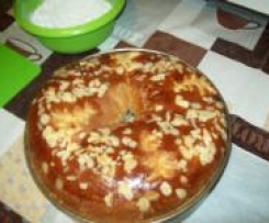 Mleko, cukier, jajka,drożdże umieścić w naczyniu i podgrzać w 50 stopniach pozycja 4-5 około 4 min. Dodać pozostałe składniki i zamieszać 20 sek/obr.6. Następnie wyrabiać ciasto - 4 min/Interwał.Przełożyć do tortownicy z kominkiem ,obsypać płatkami migdałów i zostawić na ok. 1/2 godz. do wyrośnięcia. Piec w 180 stopniach ok. 40-50 min.