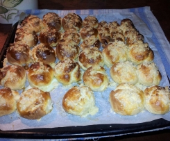 "Ciasto" 3-4 minuty na gładkie ciasto i odstawimy do wyrośnięcia. Kiedy ciasto urośnie, formujemy bułeczki, bądź warkocze i układamy na blaszce. Smarujemy białkiem.Pieczemy 20-25 minut w temperaturze 200 stopni C.