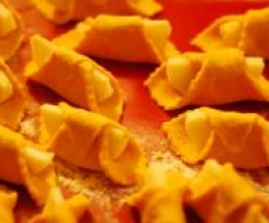 # Ciasto podczas wałkowanie staraj się jak najmniej dotykać rękoma - zbytnio rozgrzane będzie się trudniej formowało.