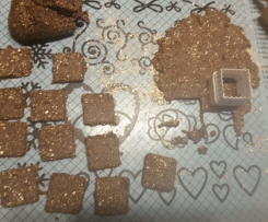 Powstałą masę wyłożyć na stolnicę w razie potrzeby krótko zagnieść, odrywać nieduże kawałki, rozwałkować je na placki o grubości ok 4-5 mm. i wykrawć foremką małe ciasteczka.