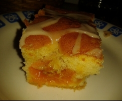 Proszę podać ile dać proszku do pieczenia i na jakiej wielkości blaszki piec oraz czy owocami mogą byś odcedzone brzoskwinie z puszki. Nie wiem czy dalam od[powiednią ilość ajerkoniaku (180g). Acha jeszcze jedno ; ciasto nie wyrosło mi tak jak na zdjęciu
