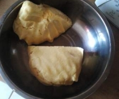 "Ciasto" .Ciasto wyjąć. Podzielić na pół.