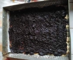 "Ciasto" .Przelać do takiej samej formy co pieczono kruche ciasto, wyłożonej pergaminem. Piec w temp. 170 st. C, termoobieg 30-40 min.