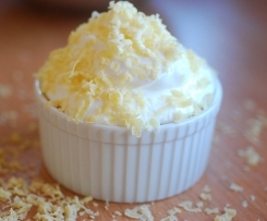 Na 5 min przed końcem pieczenia w suchym naczyniu miksującym z motylkiem ubijamy 2 białka (obroty 3,5 czas ok. 1,5-2,5 min.) Do ubitych białek dodajemy stopniowo 4 łyżki cukru i na koniec kilkanaście kropel olejku lub syropu waniliowego.