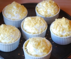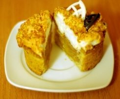 Wyjmujemy ostrożnie formeki z wypieczonym ciastem nakładamy pianę a na wierzch posypujemy rozdrobnione ciasto, które wcześniej leżało w lodówce. Całość wkładamy ponownie do piekarnika jeszcze na 15 min w temp. 150 stopni.