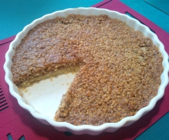 8. Na ciasto równomiernie wyłożyć masę orzechową, a następnie przykryć naczynie folią aluminiową.