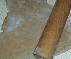 5. Na opruszoną mąką stolnicę wykładamy po kawałku ciasta, wałkujemy na grubość 3-4mm