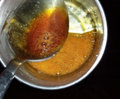 13. Wodę i cukier rozpuszczamy w garnuszku do osiągnięcia złoto-brązowego  koloru