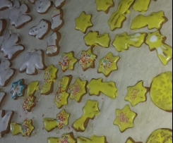 11. Każdy piernik macczać w lukrze. nadmiar zebrać. Rozkładać do wyschnięcia. Ozdobić wg uznania.