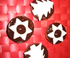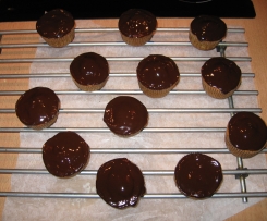 Po upieczeniu czekamy aż wystygną i dowolnie dekorujemy (ja użyłam polewy czekoladowej i masy cukrowej)