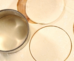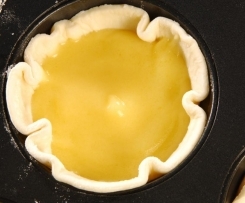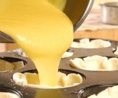 - Dodać laskę cynamonu i skórkę z cytryny, gotować 18min/90ºC/obr. 2. W czasie gotowania nagrzać piekarnik do temp. 200ºC. Jeżeli ciasto francuskie jest zbyt grube, należy rozwałkować je na oprószonej mąką powierzchni na grubość 3 mm. Wykroić okrągłe kawałki ciasta (Ø 10 cm) na tyle duże, żeby wypełnić foremki. Do każdej foremkiwłożyć okrągły kawałek ciasta.