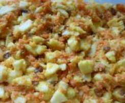 Farsz - marchewkę obrać, pokroić na kawałki i włożyc do naczynia, zmiksować czas 30 sek/ obr.3. Dodać cukier i masło i gotować czas 10 min/ 90 st/ obr.2. W tym czasie obrac jabłka, wydrążyć i pokroić w małą kostkę, nastepnie dodać do marchwii rodzynki, bułkę tartą i jabłka i wymieszać czas 30 sek/ obr. 2 za pomocą kopystki.