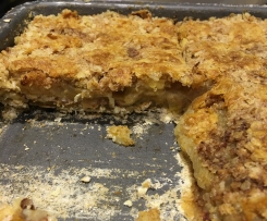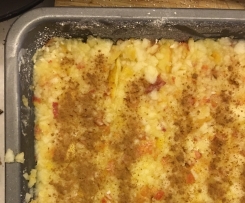 - Wysypujemy drugą część mieszanki owsianej i równomiernie rozprowadzamy na jabłkach.