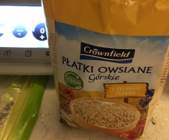 - Wysypujemy trzecią część mieszanki owsianej i równomiernie rozprowadzamy na jabłkach.
