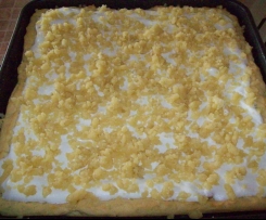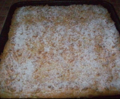 1. Przygotowanie ciasta: do Blokada naczynia miksującego"Blokada naczynia miksującego" wlozyc wszystkie skladniki: okolo 90sek / obr 5. Zawinac w folie, wlozyc na 1h do lodòwki. Wyjac, rozlozyc na blaszke, wczesniej natluszczona, nakluc, podpiec: ok. 10min / 180°. Wyjac, przestudzic. Przygotowac nadzienie: jablka obrac, przekroic na 4, pokroic na plasterki, wlozyc do patelni (dobrej, nieporysowanej patelni), dodac wode, przykryc, poddusic na malym ogniu przez 15min (okolo, maja zmieknac, ale nie rozgotowac sie ! ). Zdjac z ognia, dodac cukier, cynamon, lekko wymieszac.  W szklance wymieszac sok z cytryny z maka ziemniaczana, dodac do jablek, poddusic wszystko razem jeszcze ze 2min. Przygotowac piane: ubic bialka: 2min / 37° / obr 4, uzywajac motylka. Kontynuowac ( bez temperatury), na obrotach 4, dodajac stopniowo cukier, potem budyn. Odlozyc. Do Blokada naczynia miksującego"Blokada naczynia miksującego" wlozyc migdaly, zmielic: kilka sek. / obr 9. Dodac pozostale skladniki, wyrobic: 20sek / obr 5. Przygotowac teraz cale ciasto: na podpieczony i przestygniety spòd, posypac bulke tarta, nalozyc nadzienie jablkowe, pokryc pianka; na koniec pokryc kruszonka migdalowa, rozkruszajac ciasto bezposrednio rekoma. Piec w nagrzanym piekarniku: ok. 30min / 180°. Wyjac, wystudzic, posypac cukrem pudrem, wlozyc do lodòwki na kilka godzin ( "odpocznie", fajnie przejdzie i jest smaczniejsze chlodne, szczegòlnie teraz, latem).